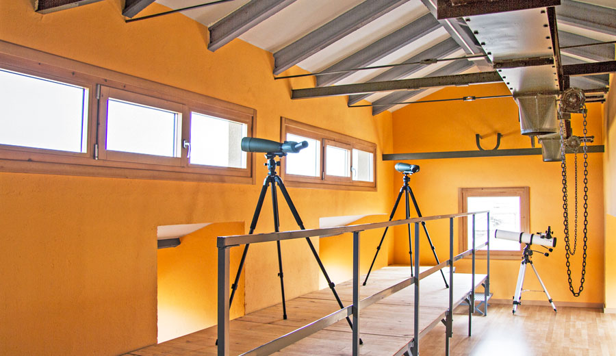 Desde aquí podemos contemplar el paso migratorio de las cigüeñas y el maravilloso espectáculo que ofrecen las grullas, además de unas vistas impresionantes sobre la laguna.